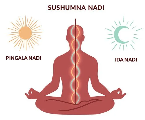 Nadis are channels of energy in the body, like rivers. These rivers are said to flow with prana (the Sanskrit word for lifeforce). Although you could try to sit in meditation and study all 72,000+ nadis with your awareness, like the ancient yogis did - we are going to simplify this task by focusing only on the three primary nadis. Two of these might feel quite familiar to you once we start talking about them!
